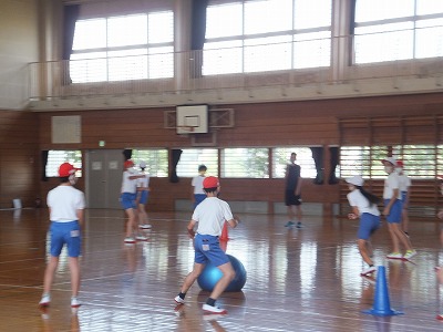グランドコンディションが良くなかったので、体育館でリレーをしました。