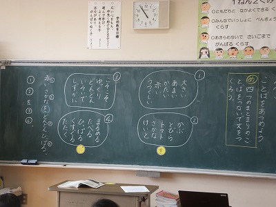 ①から④の言葉を順番に組み合わせて文章を作ります。