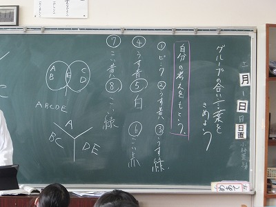 遠足のグループに合言葉を決めました。