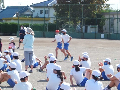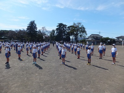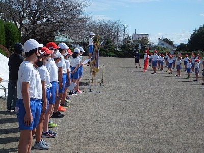 運動会特別日課で、業間に全体練習をやっています。今日は開会式の練習です。