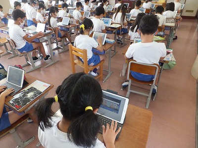 パソコンやタブレットを使う上で一番のネックになるのが、文字の打ち込みです。そこで、楽しいソフトを使いながら、キーボードでの文字の打ち込みの練習をしています。