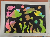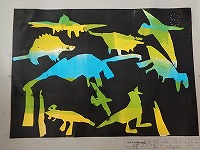版画もいよいよ刷りに入りました。終わった子は、デザインをやっています。