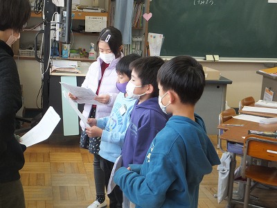 退職する校長にとって最後の儀式となりました。修了式後に、5年生の代表に、今までの講話等で印象に残っていることなどとともにはなむけの言葉をいただきました。5年生ありがとうございました。5年生のしっかりしている姿を見て、安心して退職できます。本郷北小学校をよろしくお願いします。