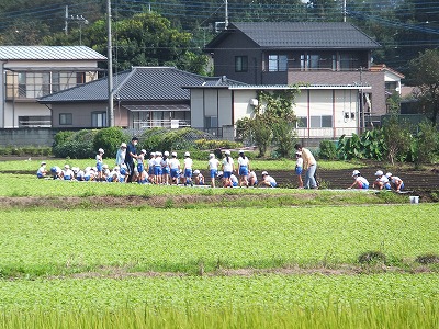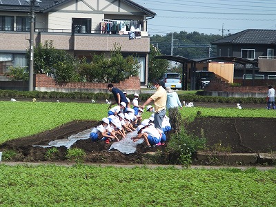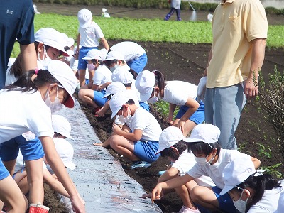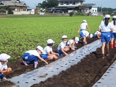 今日は、学校の北側の畑に大根の種を蒔きました。