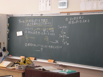 校舎の端から端まで何歩か分かれば、校舎の長さはおおよそ分かりますね。だけが正解に近いかな?