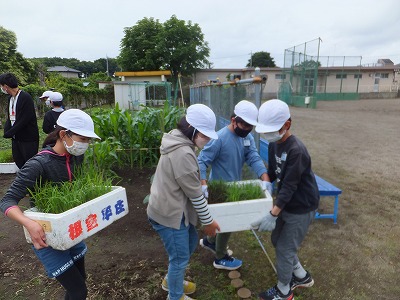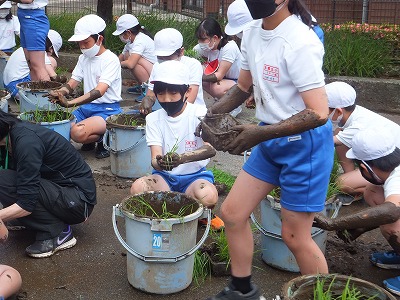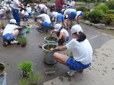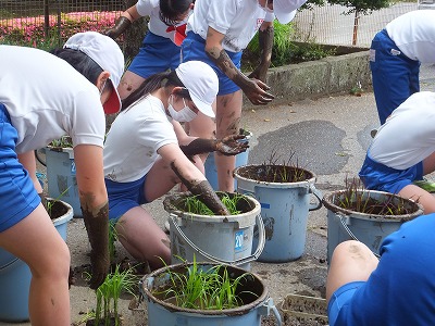 苗植えの完了です。これからは水の調節が大切です。しっかり世話をして、お米の成長を観察していきましょう。