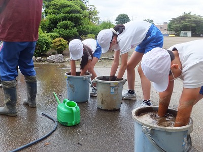 最初は戸惑っていた子も、段々思いきり混ぜ始めました。