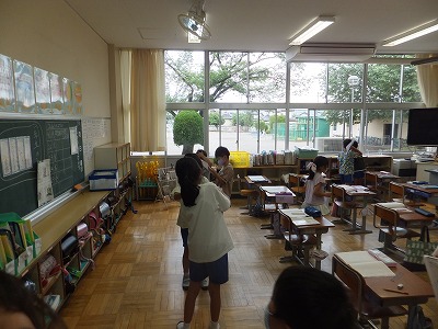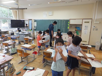 宝は、子供たちが折った折り紙です。教室のいろいろなところに隠しました。