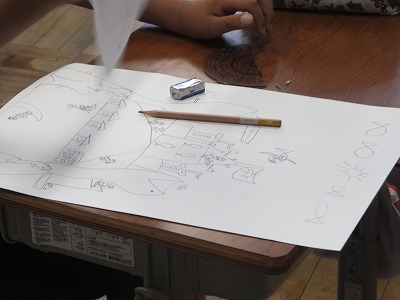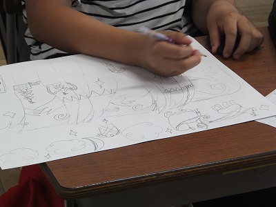 図工の時間に「へんてこ山の物語」をやりました。お話を自分で考えて、それに合わせてへんてこな山を描いていきます。