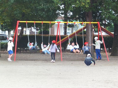 夏休み以降、長い間危険なため使用禁止になっていたブランコがようやく直りました。8つのブランコが使えるようになって子供たちは大喜び。早速ブランコで遊ぶ姿が見られました。