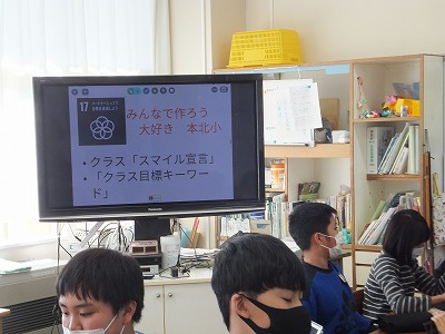 今日は、委員会で実行できるSDGsについて、6年生で話し合いました。