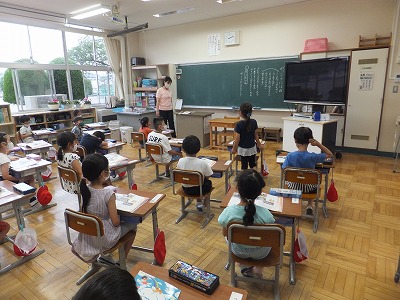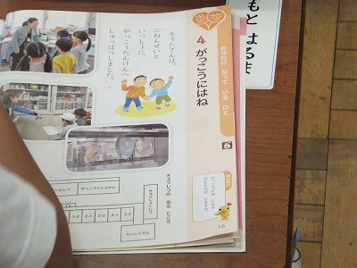 道徳の時間に、学校探検をテーマにしたお話を読みました。「たくさんの人にお世話になっていることに気付き,感謝する心情を育てる。」というのがねらいです。