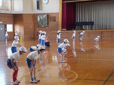 体育館でボール遊びをしました。今日は、ボールを投げたり、キャッチしたりする運動です。