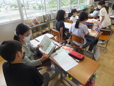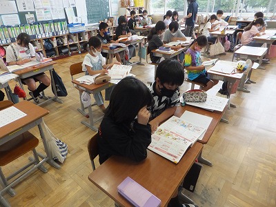 本や辞典から、気に入ったことわざを調べワークシートに書いていきます。