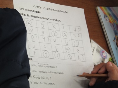 インタビューをしながら、アルファベットと集めるビンゴゲームをしました。