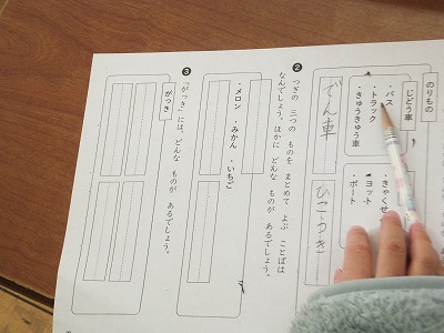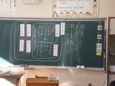 大きなまとまりとして「のりもの」、その中には自動車や船・・・・。