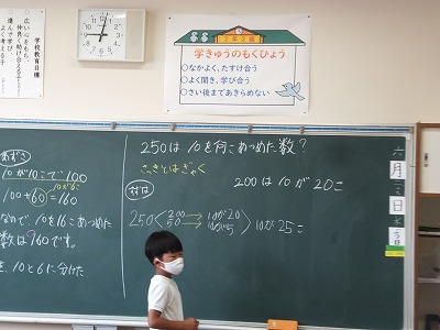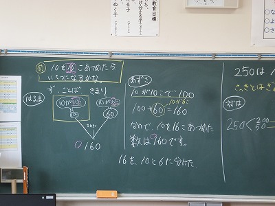 ワークシートに書いたあと、黒板に振り返りを書きました。