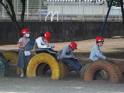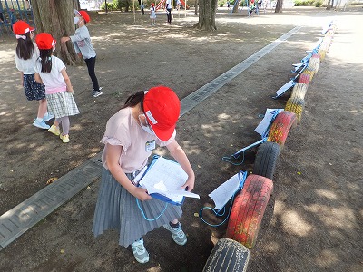 生活科で、校庭にあるものを見つけて記録しました。