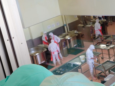 給食センターでは、給食を作っているところを見せていただきました。帰校したら、食べる給食です。