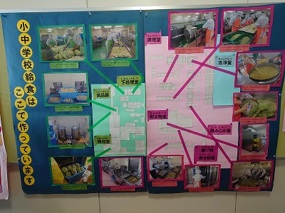 給食センターには、見学用に分かりやすい説明書きがありました。