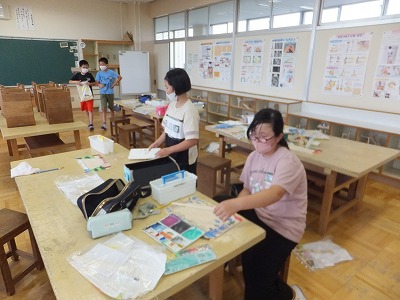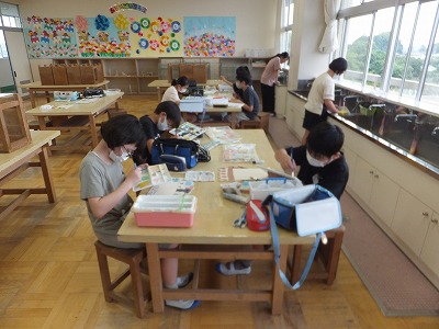版画もいよいよ刷りに入りました。終わった子は、デザインをやっています。