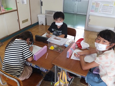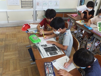 チョウチョについて書いている班もあります。モンシロチョウには、自分で名前を付けたそうです。