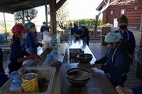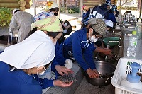 食べた後は、片付けです。鍋をピカピカに磨きます。