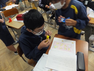 今日は、2組が道徳で「折り紙大使」の話について学習しました。