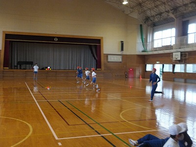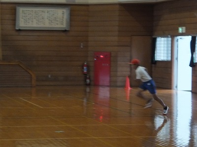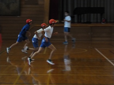 グランドコンディションが良くなかったので、体育館でリレーをしました。