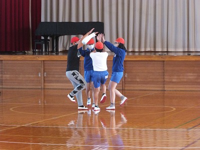 本来なら、手をつないでもう少し大人数でやるダンスですが、それができないのでグループごとに踊っています。子供たちは楽しそうに踊っています。