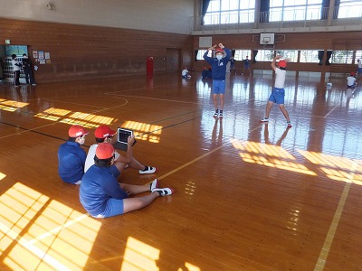 ソーランの基本の動きを確認です。より力強くをテーマに、撮影した自分の動きを確認していきます。