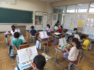 待っている間は、自分では音を出さず、流れている曲に合わせて、指の動かし方を繰り返し練習します。