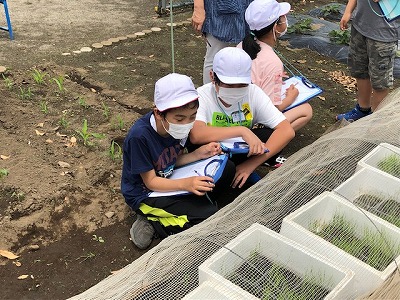 総合でいちごのパックに蒔いたコメも芽を出しました。