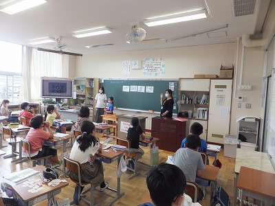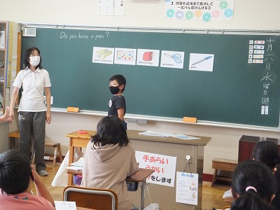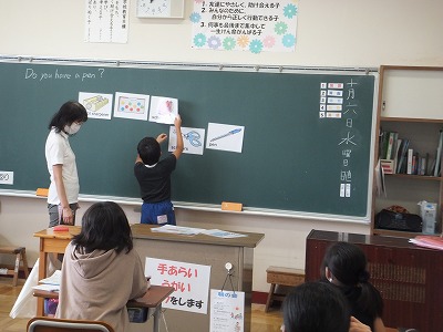 ちょっとしたゲームをしながら、文房具の言い方を何回も練習しています。