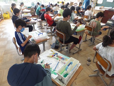 図工で作ったランプをみんなで一斉に点灯してみました。