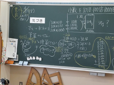 小数を10倍、100倍、1000倍するとどうなるかを学習しました。