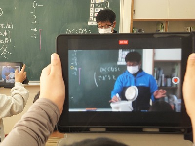 子供たちは、タブレットで動画を取っています。後で、復習に使うのでしょう。