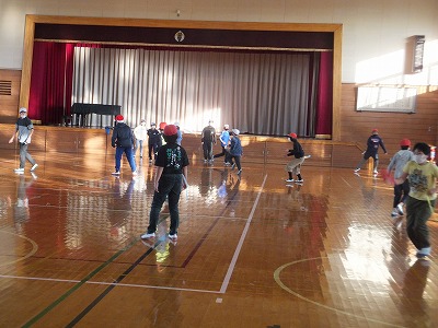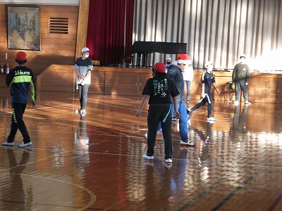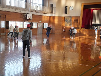 グランドコンディションが良くなかったので、体育館でリレーをしました。