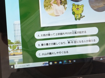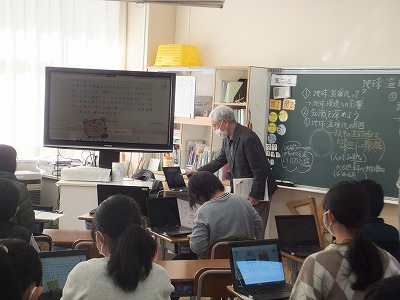 今日は、1組が地球温暖化についての学習をしました。