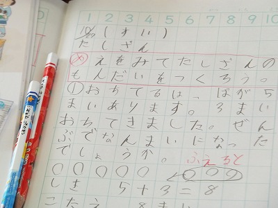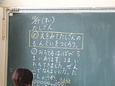 文章題を作り、図で表して、式を書いて、一連の学習で定着を図っています。