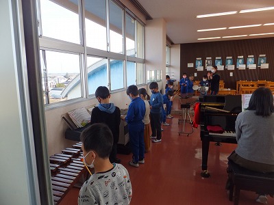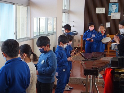 曲は「汽車は走る」です。ローテーションしながらいろいろな楽器の練習をしました。