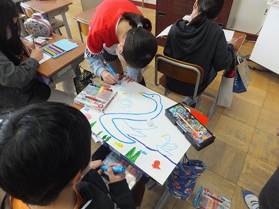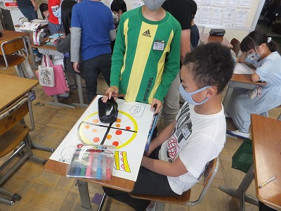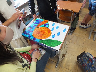 全校遠足に向けて班ごとの旗を作っています。