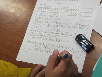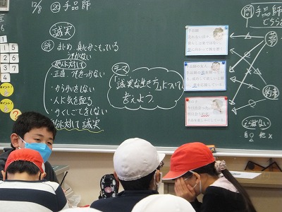 今日の道徳は、「手品師」というお話を読んで、「誠実に生きる」ということについて考えました。