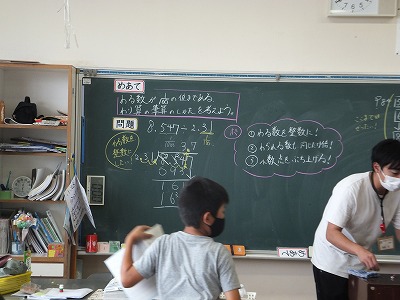 小数のわり算のポイントをおさえたうえで、多くの練習問題に取り組んでいます。