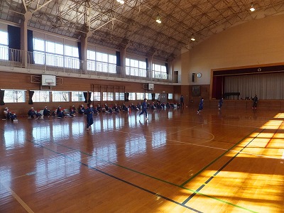 グランドコンディションが良くなかったので、体育館でリレーをしました。