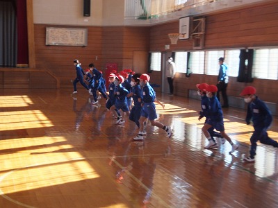 スタートです。5年生がペースメーカーになって一緒に走ってくれました。5年生を追い越さないように走りましょう。