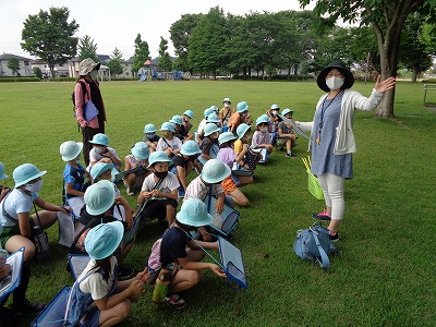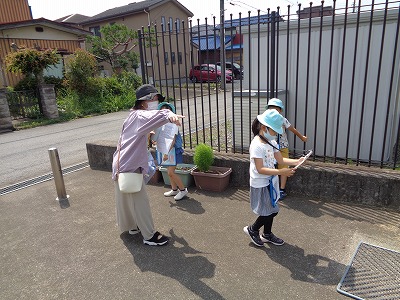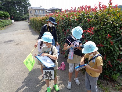 班に分かれて探検の開始です。班ごとにiPadを持って、写真も撮影します。