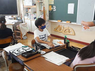 今日の書写は、河合先生に自分の書きたい字のお手本を書いていただき、それを練習しました。