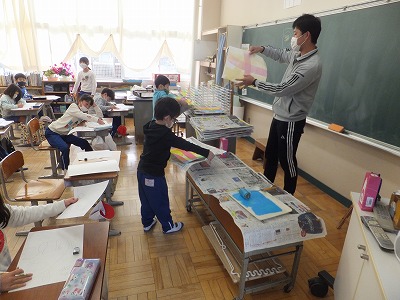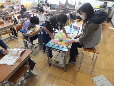 宝は、子供たちが折った折り紙です。教室のいろいろなところに隠しました。