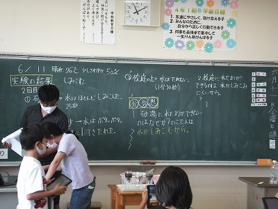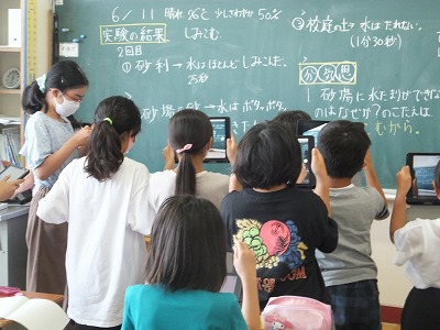 水のゆくえについて、実験したことをロイロノートにまとめています。